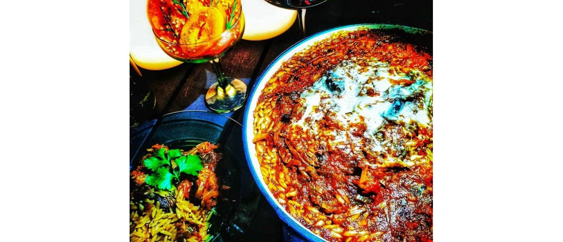 • Det du skal huske er, at tager Giouvetsi ud af ovnen, mens Kritharaki/Orzo stadig er ”al dente” - dvs at der stadig er bid i byg pastaen (Kritharaki/Orzo). Mens den samtidig er saftig. Lader du retten hvile, så snart du tager den ud af ovnen.