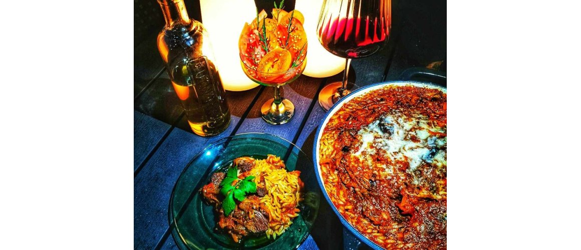 En klassisk søndag, med traditionel græsk mad, som vi elsker det. Mørt oksekød i ovnen, med ”al dente” saftige kritharaki (orzo/risoni) samt tomatsauce.